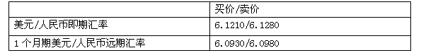 我国某企业为规避汇率风险,与某商业银行做了如下掉期业务:以即期汇率买入1000万美元,同时卖出1个月后到期的1000万美元远期合约。若美元兑人民币报价如下: