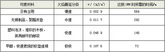 从上表可以看出,可燃材料达到1MW时所需的时间146s,属于快速,故选项C为正确答案。